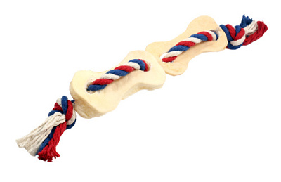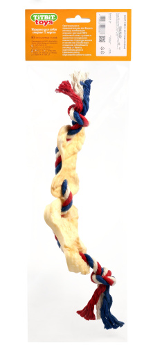 Оригинальная и привлекательная для Вашего питомца комбинация игрушки: прочный 100% хлопковый канат диаметром 10 мм с узлами и ароматное натуральное лакомство из говяжьей кожи. Структура каната и лакомства способствует очищению зубов Вашего питомца от налета, укреплению десен и снижению риска образования зубного камня.