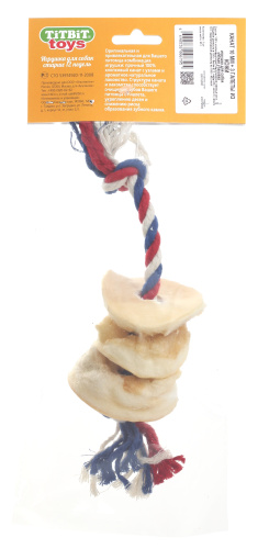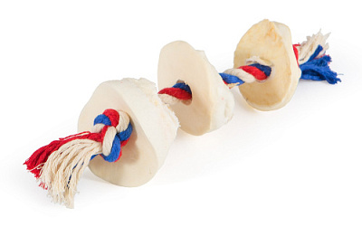Оригинальная и привлекательная для Вашего питомца комбинация игрушки: прочный 100% хлопковый канат диаметром 10 мм с узлами и ароматное натуральное лакомство из говяжьей кожи. Структура каната и лакомства способствует очищению зубов Вашего питомца от налета, укреплению десен и снижению риска образования зубного камня.