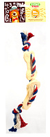 Оригинальная и привлекательная для Вашего питомца комбинация игрушки: прочный 100% хлопковый канат диаметром 10 мм с узлами и ароматное натуральное лакомство из говяжьей кожи. Структура каната и лакомства способствует очищению зубов Вашего питомца от налета, укреплению десен и снижению риска образования зубного камня.