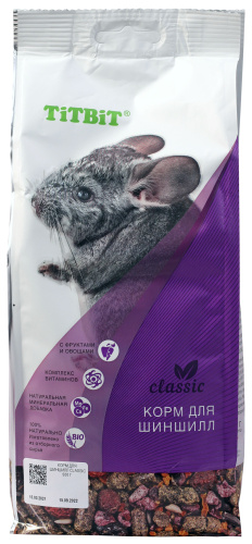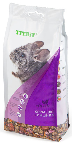 TiTBiT корм для шиншилл Classic – это полнорационная, сбалансированная смесь для ежедневного употребления. Изготовлена из высококачественного сырья. Содержит все необходимые витамины, микро- и макроэлементы.