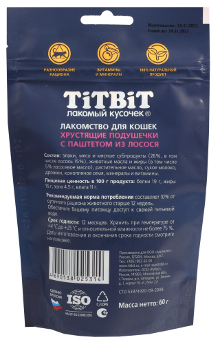 Хрустящие подушечки для кошек с паштетом из лосося 60 г
