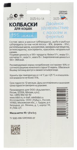 Колбаски для кошек Двойное удовольствие с лососем и форелью 15 г