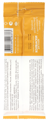 Колбаски для кошек Двойное удовольствие с цыпленком и печенью 45 г