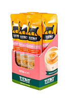 Крем-суп для кошек TITBIT – это специально разработанные вкусные и полезные продукты, которые: 1. Содержат кусочки свежего мяса; 2. Содержат 98% мясных ингредиентов; 3. Содержат дополнительные полезные ингредиенты (таурин для поддержки зрения, сердца, пищеварительной, половой и иммунной систем; морковь для поддержки зрения и пищеварения; петрушка для поддержки мочеполовой, сердечно-сосудистой и пищеварительной систем).