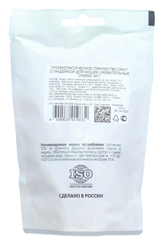 Профилактическое лакомство Dent с индейкой для кошек (Жевательные снеки) 40 г