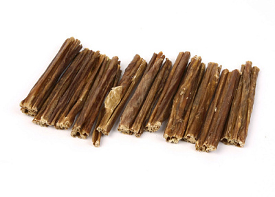 Высушенные говяжьи кишки. Упаковка содержит 14-19 штук длиной 11 см. Легкоусвояемое лакомство, богатое витаминами и ферментами микрофлоры кишечника крупного рогатого скота. Имеют большую энергетическую ценность из-за повышенного содержания жира. Богаты переваримыми протеинами, которые содержат все незаменимые аминокислоты и потому усваиваются на 90-95%. Содержат минеральные вещества в большем количестве, чем все остальные продукты (в том числе кальций, магний и фосфор), жирорастворимые витамины, а также водорастворимые витамины. Очищает зубы у мелких пород собак, продукт полезен для стимуляции пищеварения.