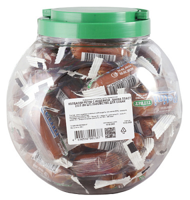 Колбаски Petini с индейкой - банка пласт. 2.0 л (60 шт) лакомство для собак