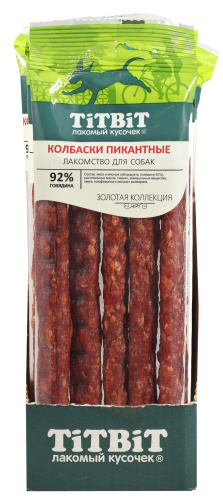 Золотая коллекция – это линейка лучших лакомств TITBIT, разработанных при участии владельцев домашних животных и их питомцев. Классический вкус этих колбасок для собак, приготовленных из тщательно отобранной говядины, гармонично дополняется небольшим количеством тимьяна, дающего пикантный приятный аромат.