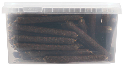 Колбаски для собак Салямка. Изготовлены из говяжьего мяса и мясных субпродуктов по колбасной технологии с добавлением зерновых. Натуральный продукт, который не содержит красителей и консервантов.