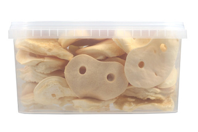 Высушенная в форме пятачка говяжья кожа. Благодаря большому содержанию аминокислот и коллагена положительно воздействует на хрящевую ткань, состояние кожи и шерсти собаки. Благодаря волокнистой структуре являются своеобразной зубной щёткой, способствующей укреплению дёсен, удалению зубного налёта и профилактике образования зубного камня.