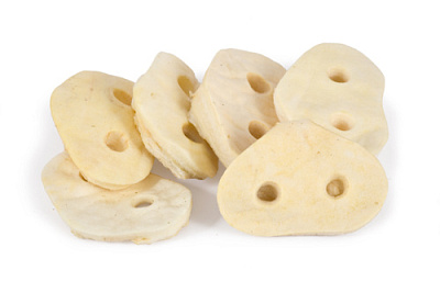 Высушенная в форме пятачка говяжья кожа. Благодаря большому содержанию аминокислот и коллагена положительно воздействует на хрящевую ткань, состояние кожи и шерсти собаки. Благодаря волокнистой структуре являются своеобразной зубной щёткой, способствующей укреплению дёсен, удалению зубного налёта и профилактике образования зубного камня.