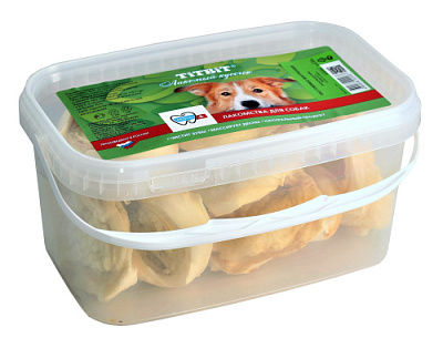 Ухо говяжье внутр. - банка пласт. 3.3 л лакомство для собак