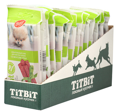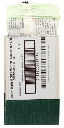 Biff «DENT» со вкусом утки – это жевательный снек для собак, необходимый для снятия мягкого зубного налёта, снижения уровня зубного камня и массажа дёсен за счет специально разработанной формы и текстуры, используется в качестве лакомства и поощрения. Рекомендуется для собак миниатюрных пород.