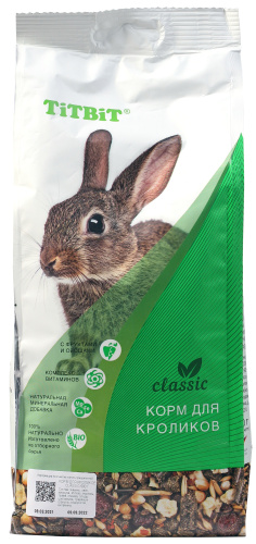 TiTBiT корм для кроликов Classic – это полнорационная, сбалансированная смесь для ежедневного употребления. Изготовлена из высококачественного сырья. Содержит все необходимые витамины, микро- и макроэлементы.