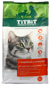 Корм сухой для взрослых кошек с индейкой и овощами 1,5 кг