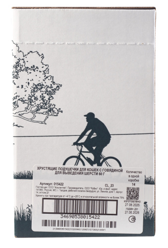 Хрустящие подушечки для кошек с говядиной для выведения шерсти 60 г
