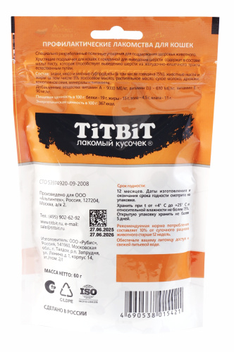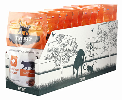 Профилактические лакомства для кошек TiTBiT - специально разработанные полезные угощения для поддержания здоровья животного. Хрустящие подушечки для кошек с говядиной для выведения шерсти, содержат в составе мальт-пасту, которая способствует выведению шерсти из желудочно-кишечного тракта естественным путём.