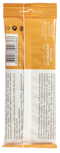Колбаски для кошек Двойное удовольствие с лососем и форелью 45 г