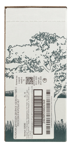 мясо и мясные субпродукты, рыба и рыбные субпродукты (в том числе лосось - 8%, форель - 8%), растительные масла, мука рисовая, минеральные вещества, антиоксиданты, консерванты, краситель натуральный кармин.