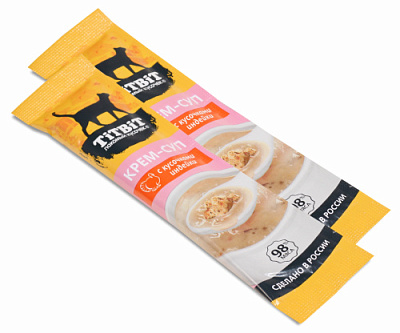 Крем-суп для кошек TITBIT – это специально разработанные вкусные и полезные продукты, которые: 1. Содержат кусочки свежего мяса; 2. Содержат 98% мясных ингредиентов; 3. Содержат дополнительные полезные ингредиенты (таурин для поддержки зрения, сердца, пищеварительной, половой и иммунной систем; морковь для поддержки зрения и пищеварения; петрушка для поддержки мочеполовой, сердечно-сосудистой и пищеварительной систем).