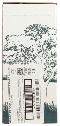 Крем-суп для кошек TITBIT – это специально разработанные вкусные и полезные продукты, которые: 1. Содержат кусочки свежего мяса; 2. Содержат 98% мясных ингредиентов; 3. Содержат дополнительные полезные ингредиенты (таурин для поддержки зрения, сердца, пищеварительной, половой и иммунной систем; морковь для поддержки зрения и пищеварения; петрушка для поддержки мочеполовой, сердечно-сосудистой и пищеварительной систем).