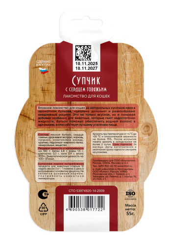 Супчик с сердцем говяжьим лакомство для кошек 55 г