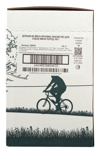 Дольки из мяса кролика лакомство для собак мини пород 100 г