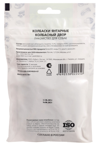 Колбаски Янтарные Колбасный двор 80 г лакомство для собак