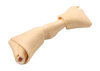 Высушенная говяжья кожа, свернутая в форме кости размером 210-230 мм. В упаковке 1 штука. Благодаря большому содержанию аминокислот и коллагена положительно воздействует на состояние кожи и шерсти собаки, а также обеспечивает поступление в организм незаменимых компонентов для роста и поддержания качества хрящевой ткани суставов собак. Способствует укреплению дёсен, удалению зубного налёта и профилактике образования зубного камня.