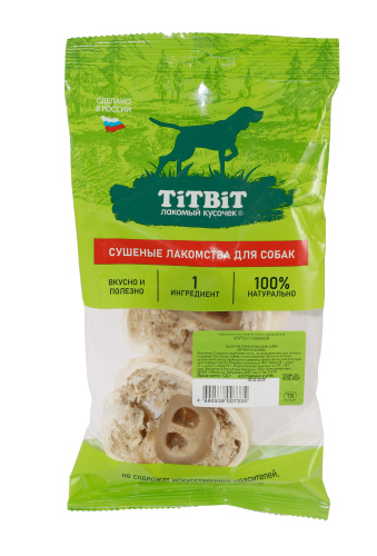 Высушенная говяжья голень, нарезанная поперек кости. Упаковка содержит 1-4 крутона. Изделие содержит кожу, костную ткань, жир, соединительную ткань и небольшие прослойки мышечной ткани. Обеспечивают дополнительное поступление в организм глюкозамина и хондроитина - составных элементов для роста, развития и поддержания в норме суставов собак. Массирует десны и укрепляет жевательную мускулатуру, очищает зубной налет и предотвращает возникновение зубного камня. Прекрасная игрушка, сохраняющая в целости предметы интерьера и личные вещи. Изделие содержит трубчатую кость и не предназначено для полного поедания. Как только собака съела футляр из кожи, сухожилий и мышц – необходимо заменить лакомство на новое.