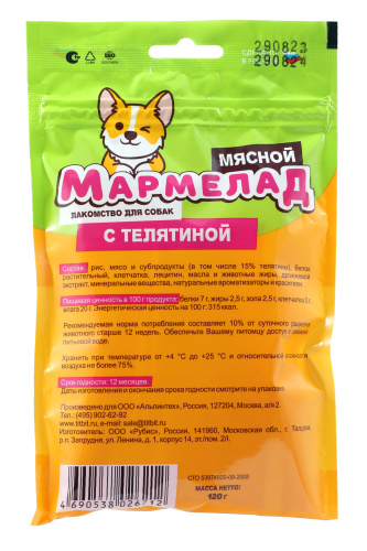 Мармелад мясной лакомство для собак с телятиной 120 г