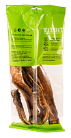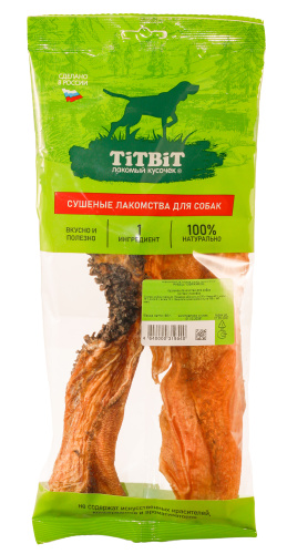 Высушенные пластины говяжьего рубца. Упаковка содержит 4-5 пластин длиной 19 см. Рубец говяжий представляет собой часть желудка КРС, точнее - первый из его преджелудков, в котором содержится полезная микрофлора. Ворсинки неочищенного сушёного рубца сохраняют на себе ферменты и витамины группы «В», вырабатываемые его микрофлорой при жизни животного. Содержат низкокалорийный, легкоусвояемый белок. Благодаря особой технологии сушки сохраняется до 60% процентов полезных веществ.