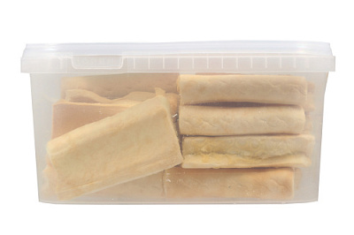 Высушенная в форме сэндвича говяжья кожа с начинкой из рубца говяжьего. Благодаря большому содержанию аминокислот и коллагена положительно воздействует на хрящевую ткань, состояние кожи и шерсти собаки. Рубец улучшает аппетит, устраняет ферментную недостаточность и придает лакомству особый вкус, который так нравится собаке. Благодаря волокнистой структуре являются своеобразной зубной щёткой, способствующей укреплению дёсен, удалению зубного налёта и профилактике образования зубного камня.