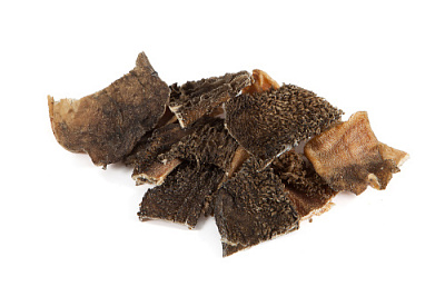 Высушенные пластины говяжьего рубца. Упаковка содержит пластины длиной 4-6 см. Рубец говяжий представляет собой часть желудка КРС, точнее - первый из его преджелудков, в котором содержится полезная микрофлора. Ворсинки неочищенного сушёного рубца сохраняют на себе ферменты и витамины группы «В», вырабатываемые его микрофлорой при жизни животного. Содержат низкокалорийный, легкоусвояемый белок. Благодаря особой технологии сушки сохраняется до 60% процентов полезных веществ. Рубец говяжий способствует улучшению пищеварения и устранению дисбактериоза.