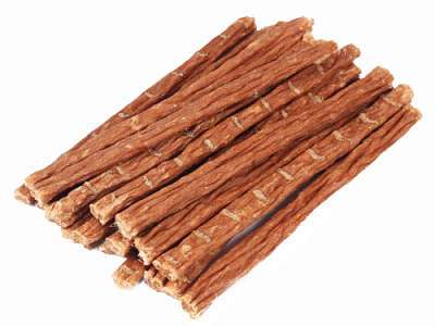 Высушенная соломка из говяжьих кишок. Упаковка содержит 22-27 штук длиной 9 см. Легкоусвояемое лакомство, богатое витаминами и ферментами микрофлоры кишечника крупного рогатого скота. Имеют большую энергетическую ценность из-за повышенного содержания жира. Богаты переваримыми протеинами, которые содержат все незаменимые аминокислоты и потому усваиваются на 90-95%. Содержат минеральные вещества в большем количестве, чем все остальные продукты (в том числе кальций, магний и фосфор), жирорастворимые витамины, а также водорастворимые витамины. Очищает зубы у мелких пород собак, продукт полезен для стимуляции пищеварения.