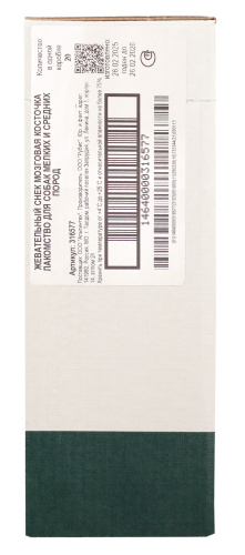 Мозговая косточка - жевательное лакомство для поощрения и ухода за зубами и деснами собак. Благодаря комбинированной текстуре и полезным добавкам использование снека позволит поддерживать здоровье ротовой полости животного в отличном состоянии: 1 - внешний гладкий слой - обеспечивает массаж и укрепление десен; 2 - внутренний пористый слой - предотвращает образование налета. Теперь можно безопасно оставить питомца с косточкой!
